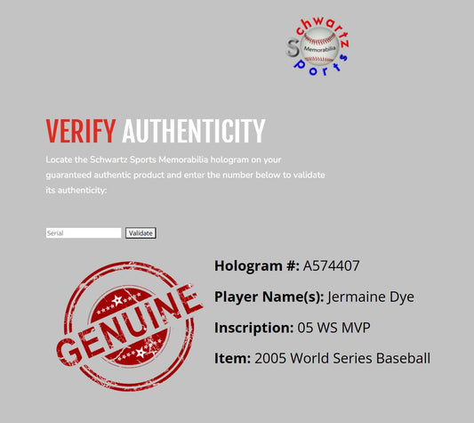 Jermaine Dye Signed 2005 World Series Baseball Inscribed "05 WS MVP" (Schwartz)