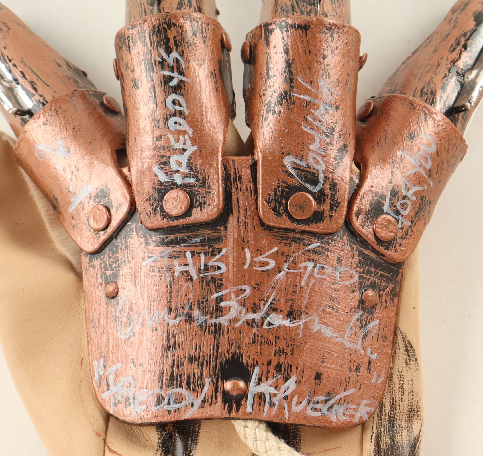 Own a piece of horror movie history with this authentic Charles Belardinelli signed Freddy Krueger glove from the iconic "A Nightmare on Elm Street" franchise! This meticulously crafted replica glove, inspired by the terrifying weapon wielded by Freddy Krueger, is a must-have for horror enthusiasts and collectors alike.