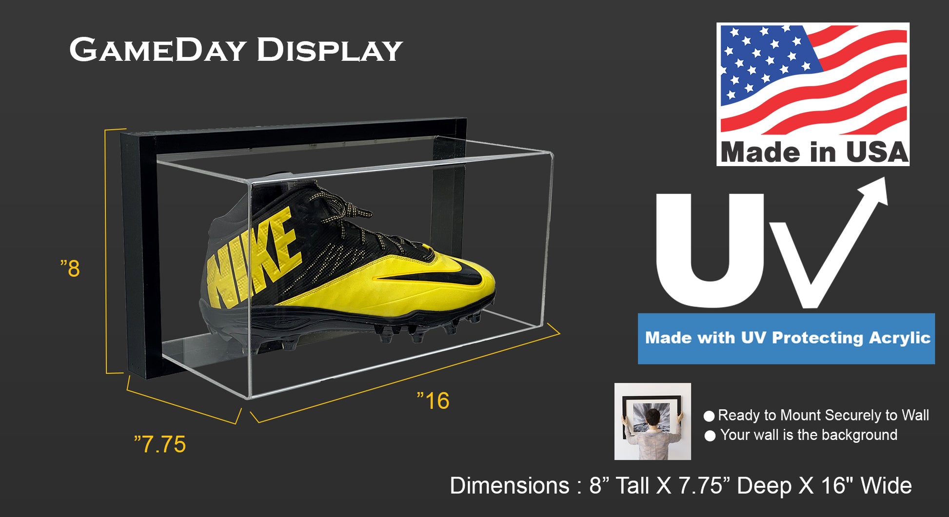 Framed Acrylic Wall Mount Large Shoe Display Up to Size 17